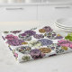This Día de los Muertos kitchen towel features a hand-drawn floral sugar skull pattern showcasing intricate black pen illustrations of calaveras adorned with flowers and roses.