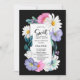 A vibrant black-bordered floral sweet sixteen birthday party invitation featuring pink and purple flowers, white daisies, and greenery surrounding the text.