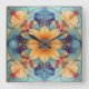 Colourful Floral Tile Pat# Powder Blue Gold ID1078 Square Wall Clock