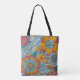 Colourful Floral tote bag with flowers, leaves, and vines of hot pink, bright gold, blue, and teal.
