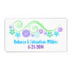 Pretty wedding label done in pastel colours, with a green flourish decorated with colourful flower blooms. Turquoise and lavender custom text is ready to personalise for your wedding. Lovely personalised label for your wedding wine or favours.