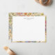 Colourful vintage pattern note card with pink, green, blue and yellow florals and a single bird.