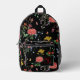 Colourful FLower Garden Hand Drawing Black Custom Printed Backpack