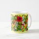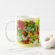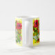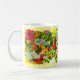 This colourful floral mug is a feast for the eyes! It features an informal garden setting with pink and white snapdragons, nasturtiums in orange, yellow and red and one red poppy flower. The original photograph has been digitally enhanced to produce an abstract impressionistic pattern.