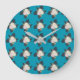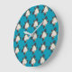 Colourful Flower Pattern on Blue Background Large Clock