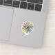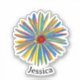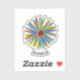 A cut-out shaped vinyl sticker with a colourful individual flower picture on a light buttermilk cream background. In rich shades of. blue, yellow and red, the flower has a modern painted appearance. Personalise with a name or other text of your choice, which will be displayed below the flower.