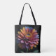 This stunning tote features a vibrant, multi-coloured single flower set against a sleek black background. Perfect for adding a pop of colour to your outfit, this tote is both stylish & functional, with plenty of room for all your essentials. Add a touch of artistry to your everyday look with this eye-catching accessory.
