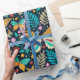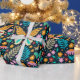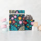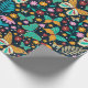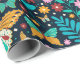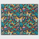 Colourful retro flowers and butterflies in seamless pattern over dark background.