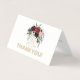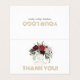 Thank you card design. Modern typography with colourful flowers arrangement on a white background.