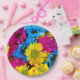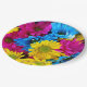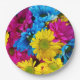 Colourful Flowers, Daisies - Blue Yellow Pink Paper Plate