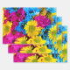Colourful Flowers, Daisies - Blue Yellow Pink Wrapping Paper Sheet