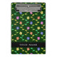 Colourful Flowers, Green Background, Black Mini Clipboard