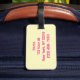 This was purchased as part of a 40th Birthday present for my nephew who is going to Vegas. It is made of high quality, very study and we decided only to put his name on the back of the tag, but you can add a full address if you so wish.