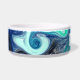 Blue, turquoise and white marbled fluid art personalised dog bowl.