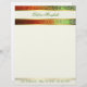 Lovely and professional looking letterhead paper done in cream, with graphics of a gradient green to orange coloured foil, at the top. A cream coloured stripe, with gold tone borders runs across the foil decorative top and one thin gold tone line, across the bottom, Green text, on the top and bottom, is ready to personalise for yourself or your business.