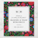 A beautiful addition to your wedding celebration, this custom and colourful wine label features an elegant typography two-letter monogram, personal message, names and the wedding date. Both boards feature a pretty repeating pattern of folk art inspired florals n red, pink, yellow, orange, green and shades of blue and give the label a country cottage feel without being kitschy. Easily add your own flair and suit your personal colour story by changing the background colours from black to the hue of your choice.
