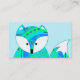 Aqua blue business card with cartoon like graphics of a blue, green, and teal coloured fox. Personalise the text to suit your needs. Makes a cute mummy card too!