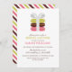 Stylish and chic invitations feature a cute vector illustration of six brown, beige, and blue or aqua french macaron cookies inside a gift box with a bow on top. Visit our store for more colour options and matching products.