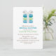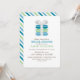 Stylish and chic invitations feature a cute vector illustration of six brown, beige, and blue or aqua french macaron cookies inside a gift box with a bow on top. Visit our store for more colour options and matching products.
