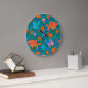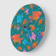 A Round Acrylic Wall Clock, with a pattern of colourful fish swimming on the ocean, from a whimsical hand-painted paper collage by Judy Adamson. Part of the Posh and Painterly 'Fish in the Sea' collection, this pattern can be easily customised to fit any Clock.