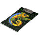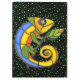Image is my original painting. This colourful smiling abstract lizard is hanging on a branch with a large leaf at the end. Fun for kids. He is done in greens, blues, yellows, and oranges. See my store Art by MAR for matching products with this design.