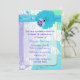 Colourful sweet 16 birthday party invitation done in splashes of lavender, aquamarine, white, and mint green. Graphics of a pretty aquamarine ribbon, at the top, is decorated with a big flower and a cute lavender ladybug. All text is ready to personalise for your daughter's big day.