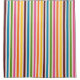 A cute and colourful shower curtain vertical stripes of brown, pink, blue, green, orange, yellow, and white.