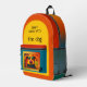 Colourful backpack featuring a cute and funny image of a dog, or your own photo. The front pocket paw print is a separate image and can be scaled, rotated or deleted. A lovely backpack for school or hiking.