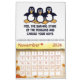 Funny Penguin Calendar. Each page has a different graphic image / cartoon art drawing of penguins with funny sayings / quips in different colours. Guaranteed to put a smile on your face and make you laugh each month of the year. A Penguin lover's calendar that will bring joy all year round. Add the year that you want to use it for.