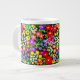 Original fine art design of colourful garden flowers by designer Carolyn McFann of Two Purring Cats Studio printed on a quality jumbo speciality mug for floral design fans.