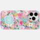 Customise this gorgeous modern colourful flower garden of flowers in pink, purple, blue and yellow iPhone 16 pro max case with your your initials in a modern CAP font in white on blue. It's so vibrant and happy!