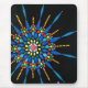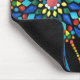 Colourful painting of gemstones in a circular mosaic pattern on a black background, printed on mouse pads.