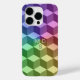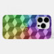 A bright and colourful phone case with an geometric isometric cube pattern and space for your initials