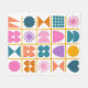 This fun artwork features a simple grid filled with colourful geometric shapes.
