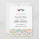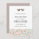 A modern wedding invitation suite with colourful geometric hearts and a fun, trendy triangle pattern. Colours can be customised to suit your theme / motif.
