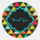 Colourful geometric triangles seamless pattern. Triangles with stripes, polka dot and black damasks. Thank you sticker