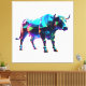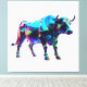 Colourful Glass Bull Digital Art – Vibrant Neon 3D Canvas Print