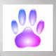 A shiny, transparent dog paw print made of glass. All digital image that reproduces the texture of glass. Custom posters. Gift idea.