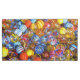 Did you ever play marble games as a kid? If so, this design should hit home. Hand fulls of shiny, striped, artistic and colourful glass cut marbles in vibrant colours of turquoise , orange, yellow, pink, blue, red, and white.