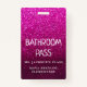 Hot pink metallic faux glitter sparkles behind an easy to read and update bathroom hall pass. Update the text to show the teacher and school name, as well as the purpose of the badge. Available in many other sparkly colours and designs.