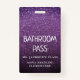 Purple amethyst metallic faux glitter sparkles behind an easy to read and update bathroom hall pass. Update the text to show the teacher and school name, as well as the purpose of the badge. Available in many other sparkly colours and designs.