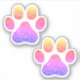 Colourful glitter paw prints pet lover sticker. This cute sticker features faux colourful glitter paw prints, perfect for a cat or dog lover.