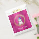 A cute pink unicorn party favour bag, suitable for a little girl's unicorn birthday party for favours for the guests to take home. It features a little cartoon unicorn sitting inside a circle of golden glitter, on a pretty shiny pink background. The words 'Thank You' can be customised, substituted for a child's name, or removed altogether if wished.