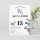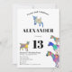 A collection of colourful, cute goats in vibrant pink, purple, blue, orange, yellow and aqua. A cute farm animals 13th birthday party invitation with baby goats and goats standing on goats. This fun party invitation is easy to personalised to create a unique party invitation suitable for children and adult goat lovers. Colourful psychedelic goat original illustrations by artist Catherine Sweetman