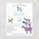 Cute goats farm animal 10th birthday party budget invitation perfect for a barnyard party. A collection of colourful, cute goats in vibrant pink, purple, blue, orange, yellow and aqua. A cute farm animals 10th birthday party invitation with baby goats and goats standing on goats. This fun budget party invitation is easy to personalised to create a unique party invitation suitable for children and adult goat lovers. Original artwork by artist Catherine Sweetman
