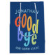A colourful goodbye and good luck gift bag This modern typographic wrapping paper is the perfect way to say farewell in style to a friend or coworker. Personalise with a custom name.