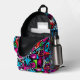 This backpack showcases a vibrant and intricate graffiti-inspired design, perfect for those who embrace urban art and a bold, expressive style. The all-over print is a high-energy collage of stylised, bubbly letters and abstract shapes in a striking colour palette of neon pink, electric blue, lime green, and magenta, creating a dynamic visual flow. Playful characters with cartoonish eyes are cleverly integrated into the chaotic composition, adding a whimsical touch. This design appeals to a younger audience, including teens and young adults, who appreciate street culture, artistic expression, and statement accessories. It's an ideal choice for students, artists, or anyone looking to infuse their everyday look with a touch of Y2K-inspired, hip-hop aesthetic.