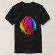 I give wanted to give this a 4 instead of a 5 because these Basic DARK T0shirts run unexpectedly SLIM or Narrow. Which is great if you do not have a potbelly, but I have a paunch. It isn't the shirt's fault that I've got a beer belly. The design and shirt itself is a quality cotton shirt. The color is more of a deep purple, but still a very pretty color. The Basic DARK T-shirts run a bit SLIMMER than the Basic Ts. The neck is a fraction narrower (or seems to be narrower) also. I'm a paunchy middle-aged woman and my neck is 12 inches (31cm) thick and the neckline fell about the same as in the photo of the man, and I had the desire to tug it a bit. So if you're a thick necked man or like loose shirts, be aware these are slimmer shirts. Once I get rid of my lockdown paunch it'll look great. The shirt washed well in cold water with no apparent bleeding. We don't have a dryer, so it hung dry. Did not shrink. Love the colors and the design. The design looks smaller on my shirt than it does on the model on-line. But still, it looks good on the shirt. The printing looks as it does on the model, just the size seems fractionally smaller. Washed garment in cold water, hung dry and design appeared unaffected.