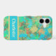 This colourful green, yellow and blue drops abstract pattern design has space for your name. A unique, modern, and personalised phone design bridges the gap between high-end, sustainable materials and advanced, customisability.