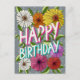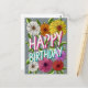 Colourful Grey Floral Personalised Happy Birthday Postcard